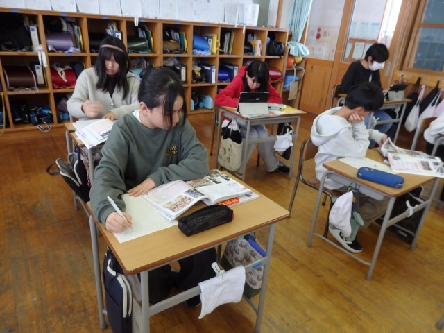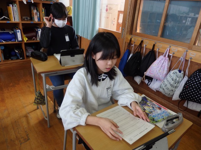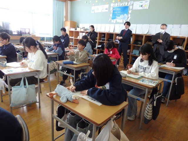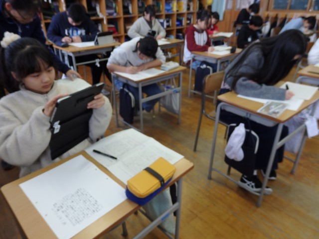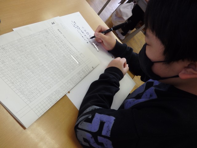 6年生の6時間目は総合の授業でした。2月6日に行われる親善スキー大会に向けてのめあてを立てていました。めあてだけでなく、めあて達成のためにあと4回のスキー授業でどのように取り組んでいくのかも考えました。とても具体的に書いている子が多く、中には小さい字でビッシリと書き込んでいる子がいました。明日のスキー授業からポールの練習が入ってくるのでしょうか。