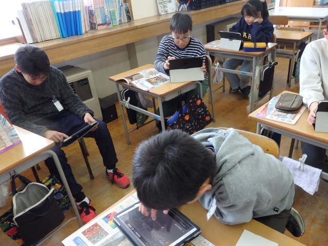 3年生の1時間目は国語の授業でした。「道具のひみつを伝えよう」の学習です。図書室にある「○○の秘密」シリーズから選んだ本を読んだり、インターネットで調べたりして分かったことをレポートとしてまとめていました。レポートの用紙にビッシリと調べて分かったことを書き込んでいる子がたくさんいました。