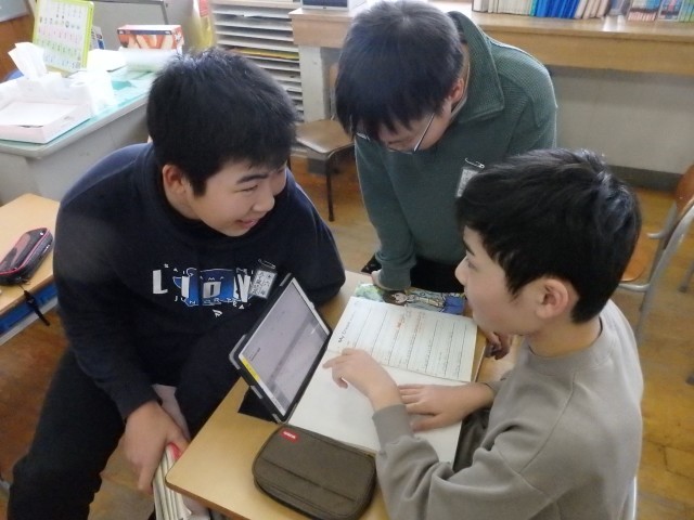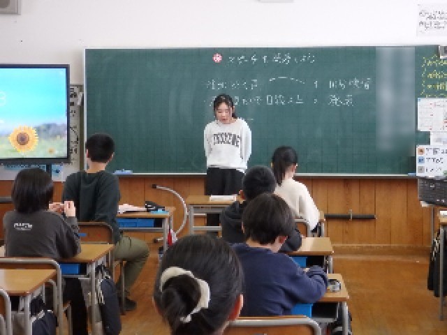 6年生の2時間目は学活の授業でした。3学期の係について、昨日、選出された学級委員の子たちの司会で話し合いを行いました。必要な係と人数が決まったら自分がやりたい係にネームプレートを貼っていきます。人数よりも希望者が多かった係は話し合ったり、ジャンケンしたりして円満に解決しました。係が決まったら、「誰でしょう?」クイズの続きです。「冬休みの宿題を早く終わらせた」「ロボ団に行ってきた」「大晦日は○時まで起きていた」のは誰か探りました。