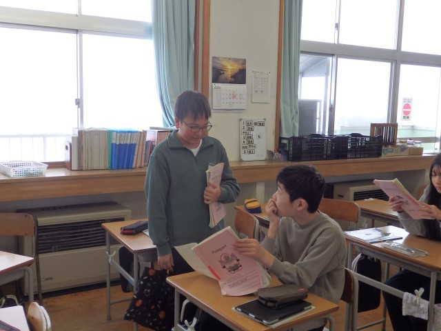 6年生の4時間目です。一足早く担任の先生からクリスマスプレゼントです。中身はシールと消しゴム。とてもうれしそうにお互いの袋に入っていた物を見せ合っていました。いい笑顔ですね。