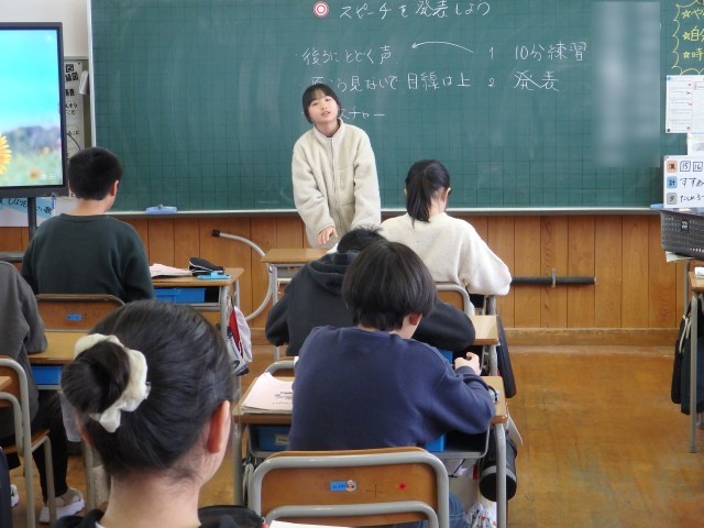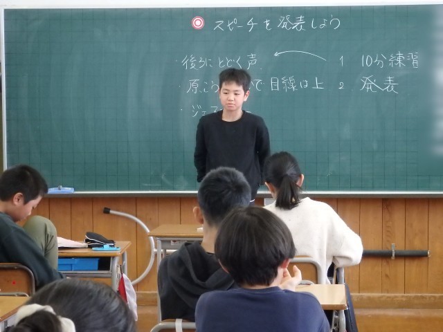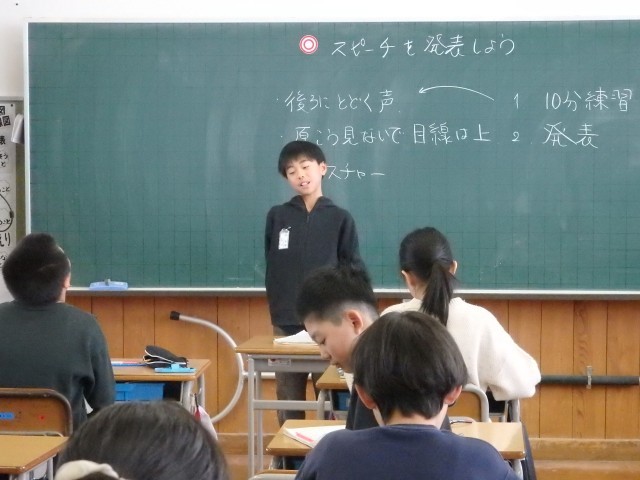 6年生の3時間目は国際科の授業でした。「将来の夢」について1人ずつスピーチをします。まずは「目線」「声の大きさ」「ジェスチャー」を意識して練習です。1人でひたすら読んだり、友だちと発表し合ったりしながら一生懸命に練習していました。