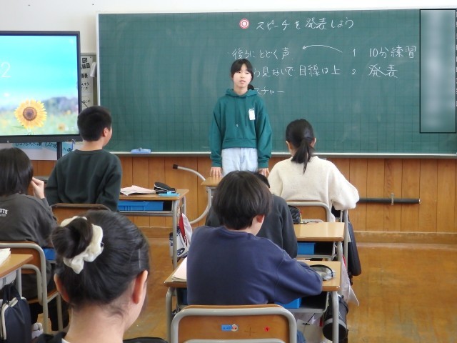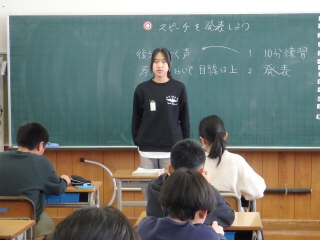 6年生の4時間目は国際科の授業でした。まずは、前回、体調不良でお休みだったために発表できなかった3人の子が「将来の夢」についてスピーチをしました。将来なりたい職業とそれに関連して自分ができることや得意なこと、その職業に就いてしたいこと、そのために何の勉強を頑張るかなどについてスピーチしました。しっかり目線が上がっていますね。