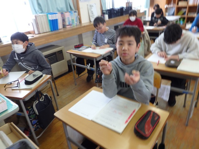 6年生の1時間目は学活の授業でした。「卒業まであと○日」というカウントダウンカレンダーを作っていました。1月7日から始まるカレンダーで「あと50日」からのスタートです。(ということは今日の時点であと55日ですね)文字にグラデーションをつけてきれいに色塗りしたり、カービーや仮面ライダーなどの好きな絵を描いたりしていました。卒業までの日々で後輩たち、先生たち、お家の人たち、そして仲間たちに何を伝え何を残していくのかを考え、おおまき小の伝統を繋いでいってほしいです。