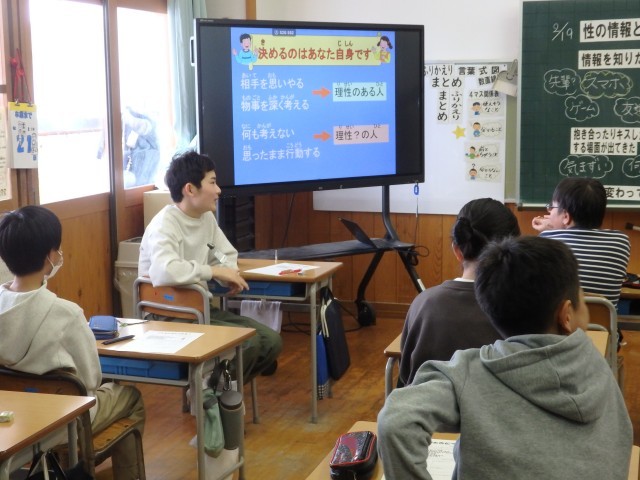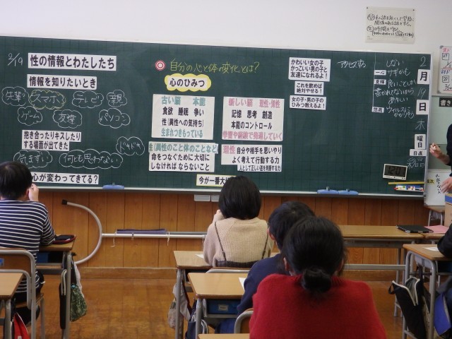 6年生の6時間目は総合の授業でした。「性の情報と私たち」の学習です。心には「本能」と「理性」があるということを学びました。その上で「インターネットを使っていると突然、こんな画面が出てきました」という設定で、次のような文章が提示されました。「今だけのキャンペーンです。無料で友だちを紹介しています。かっこいい男の子、かわいい女の子と友だちになりませんか?安心できるサイトです。ぜひ登録して!」 これに対して「アクセスする」「アクセスしない」両方の理由を考えることで「正しい行動を選択する」ことを学びました。今や私たちの生活からは切り離せないスマホやネットの世界です。便利なのは確かですが、自分の心と身体は自分で守らなければなりません。スマホ・ネットとの上手な付き合い方を身に付けてほしいです。