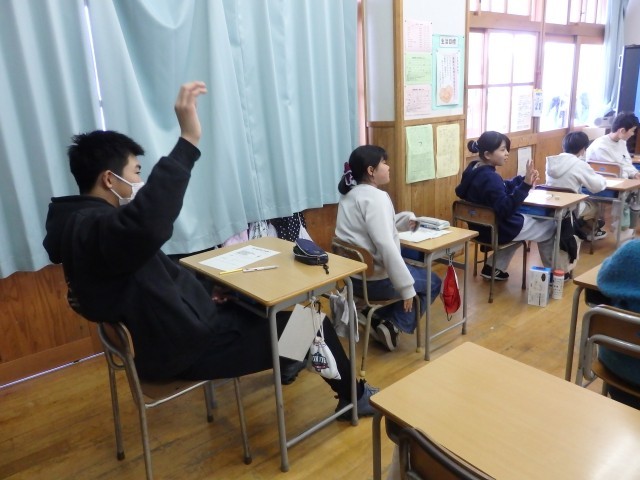 6年生の1時間目は国語の授業でした。「宇宙への思い」の学習です。「はやぶさ」や「はやぶさ2」の役割、小惑星「リュウグウ」と「イトカワ」の大きさや特徴など、内容の読み取りをしていました。教科書のどこに書かれているかを見つけ、線を引いて、ノートに書き出していました。南魚沼市の全ての小中学校で取り組んでいる「読む力」の中の「正しく読む力」の指導です。
