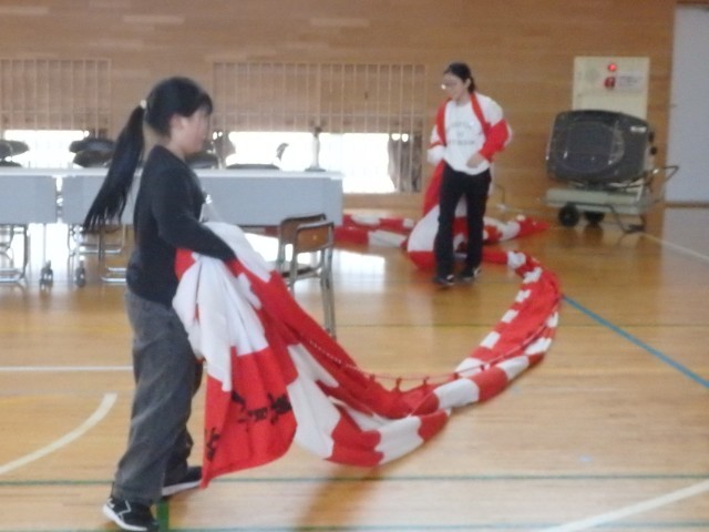 6年生の4時間目。「何でもバスケット」に続いて「イス取りゲーム」です。イスをめぐる争いは女子が強かったようです。5人に絞られた段階で、女子が4人で男子が1人。そのまま決勝戦も女子同士の戦いでした。最強王が決まってピース!