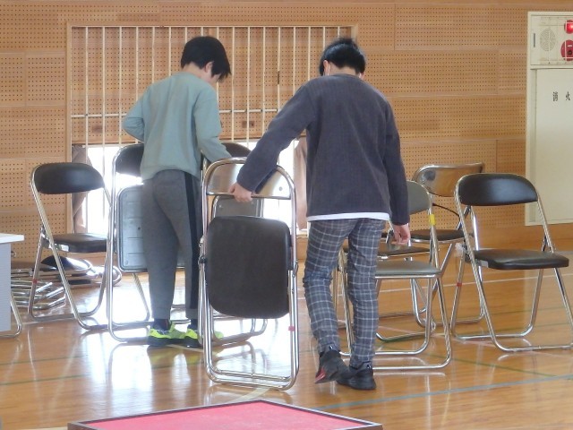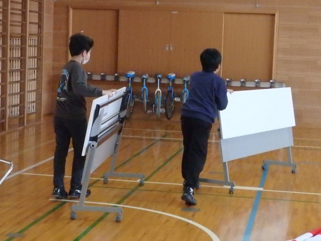 6年生の3,4時間目の学活です。3時間目は係分担決めをしました。希望が重なってしまい人数オーバーの係は公平にじゃんけんで決めました。4時間目は明日実施する入学式の準備を行いました。保護者席や職員・来賓席用のパイプ椅子を準備してくれました。とっても一生懸命に仕事をしてくれる6年生、いいいですね!