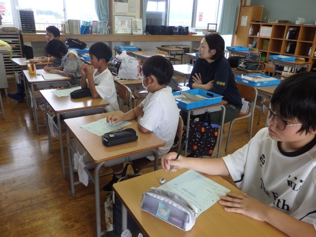 問題は3問。ひまわり班ごとに相談して答えていました。