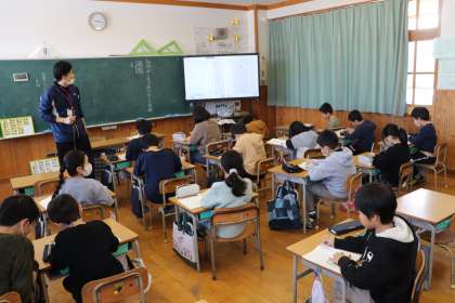 1限、5年生は社会で「未来とつながる情報」の学習。