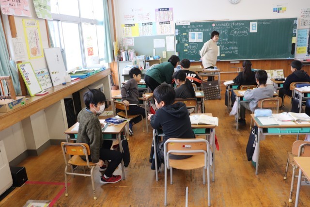 2限、4年生は国語で「調べたことをほうこくしよう」のテストでした。