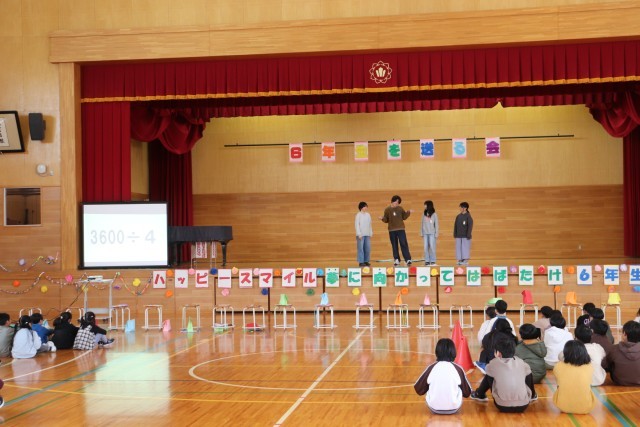 スローガン「ハッピースマイル夢に向かってはばたけ6年生」に向かって、全校で頑張り、楽しんだ六送会でした。