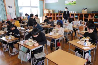 調理員さん、給食を運搬してくださる方々、農家の方々、様々な方々に感謝しながら、残さずに食べていました。