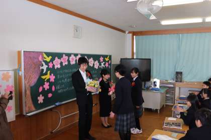 勤務時間の関係で今日の離任式に出席できなかった離任される先生につきましては、先日職員室で離任式を行いました。