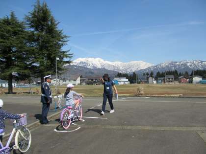 自転車の乗り方の指導を受け、学校の周囲の道路を使い、実際に自転車に乗ってみました。