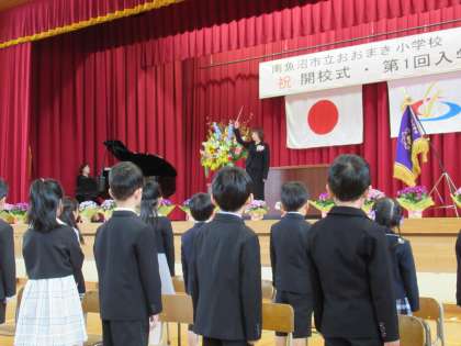 3時間目には開校式で歌う「今日から始まる」の練習をしました。