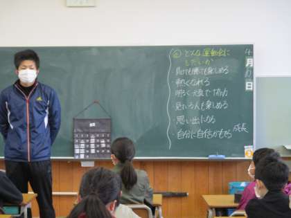 新任式の後、校長が「自分で考えて行動しよう」という話をしました。