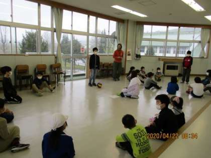 異学年グループであるひまわり班の顔合わせをしました。本来ならば、体育館に全校を集めて一斉に行う予定でしたが、感染防止のため、各教室に分かれて行いました。