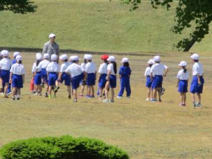 今は天気がいいので、グラウンドでできる学習を行っています。