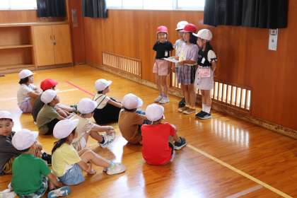 1,3,5年生の代表児童が、堂々と「1学期頑張ったこと、夏休み楽しみなこと」を発表しました。 -