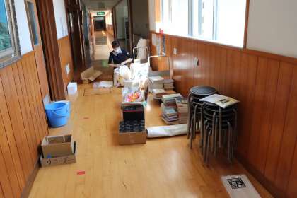 4限、5年生は学活で教室、下駄箱の清掃・片付けをやっていました。