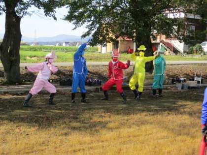 ボランティアの地域の皆様、南魚沼地域振興局の皆様、そして地球泉隊のーりんジャーの5人のヒーローがおいでくださいました。