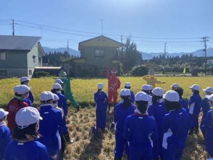 本日、快晴の中、26名のボランティアの皆様からご協力いただき、全校稲刈りを実施しました。