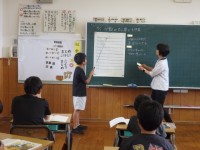 4年生の3時間目は国語の授業でした。市教委にある学習指導センターの指導主事をお招きし、先生たち全員が授業を見る職員研修としての授業です。「暮らしの中の和と洋」の学習です。「和室と洋室にはどんな違いが...
