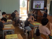 4年生の2時間目は図工の授業でした。ペンや鉛筆、消しゴムなど、文房具を表す英単語の学習です。ALTの先生の後に続いて読む練習をしたり、「pen」と「pens」の違いは何かを考えました。1枚絵の写真、...