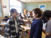 1年生の2時間目は国語の授業でした。市教委にある学習指導センターの指導主事から授業を見ていただく職員研修としての授業でした。「かいがら」の学習です。まずはみんなで音読をしたり、隣の人とペアで丸読みを...