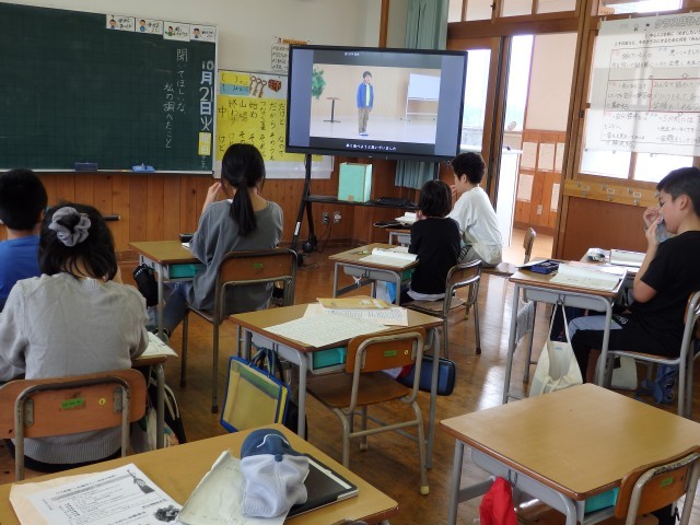 4年生の3時間目は国語の授業でした。「聞いてほしいな、こんな出来事」の学習です。ある小学生がスピーチをしている動画を視聴して「人に話をするときに気を付けるポイントは何か」を考えました。「気持ちの変化...