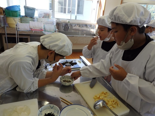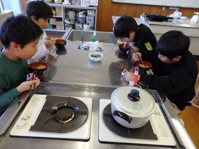 5年生の調理実習。味噌汁が完成したので、みんなで「いただきます!」野菜もよく火が通っていて、塩加減もちょうどいい感じでおいしかったです。4人で鍋一杯を完食した班がいくつもありました。中には5杯も食べ...