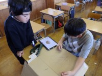 4年生の5時間目、図工の絵が完成した子たちは、学習発表会の小道具づくりです。どんな物が必要なのか、どういうものを作るのか、自分で考えて作っていました。何を作っているのかは本番のお楽しみです。
