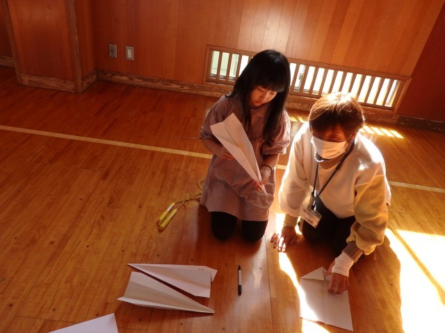 ひかり学級1組の子たちが自立活動として、第2体育館で紙飛行機大会をしていました。どうやったら上手く飛ぶのかを考え、工夫して折っていました。飛ばしてみてうまく飛ばなかったら、もう一度考えて、再挑戦です...