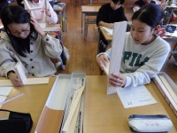 4日(火)の5,6時間目に5年生は学年PTA行事を行いました。題して「紙ぶるると新聞紙エアドーム」です。まずは紙で作る建物の模型で耐震の学習をしました。親子で仲良く模型を組み立てていますね。