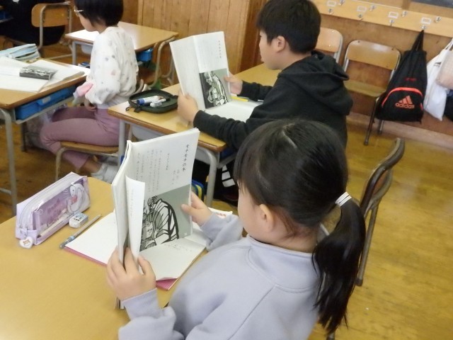 4年生の1時間目は国語の授業でした。今日から「ごんぎつね」の学習です。まずは、デジタル教科書の音声を聞きながら、最初から最後までを黙読しました。教科書をもって読んだり、読んでいるところを指で追いなが...