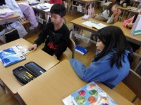 4年生の1時間目は学活の授業でした。輪になってクラス会議です。議題は「いじめ見逃しゼロのために」で、どんなことを心掛けたらよいか話し合いました。担任の先生は口出しせず、学級委員の2名が司会をして話し...