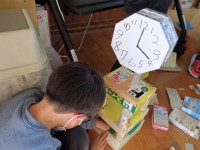 2年生の5時間目は図工の授業でした。いろいろな箱を組み合わせて「友だちハウス」を作ります。「ほら、見て!」とたくさんの子が自分が作っているものを紹介してくれました。時計台、映画館、エレベーターなどを...