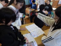 3年生の1,2時間目の様子です。昨日の国際科で作っていたクリスマスカードを仕上げたり、宿題やプリントなどの配付物を配っていました。配り係の子たちが協力しながら配ってくれていました。