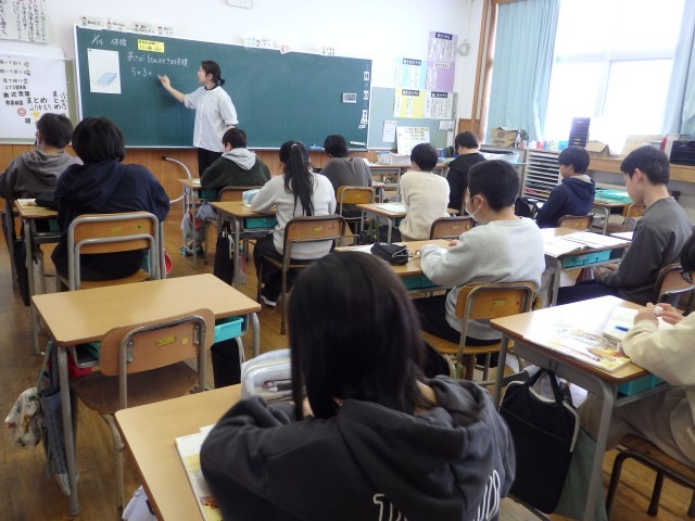 5年生の3時間目は算数の授業でした。「体積」の学習です。まずは「縦4cm、横5cm、高さ1cm」の立方体の図が示され、その体積を求めました。そして、そこから1cmずつ高さが増えていったときの体積を求...