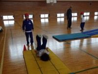 1年生の3時間目は体育の授業でした。マット運動の学習です。前回りや後ろ回り、倒立の練習をしていました。中には側転が上手にできている子がいました。最後に先生の周りに集まって「できるようになった技を披露...
