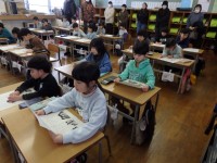 3年生の4時間目は算数の授業でした。計算ドリルで「2けた×2けたの計算」の問題をひたすら解いていました。1人で黙々と取り組んだり、机をくっつけて分からないところを教え合いながら取り組んだりしていまし...