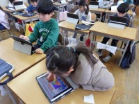 4年生の3時間目は国語の授業でした。「数え方を生みだそう」の学習です。自分が知っている物の数え方の単位を1つ選び、「何を数えるときに使われているのか」や「漢字の意味」について辞書やタブレットで調べて...