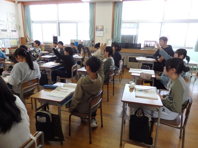 3年生の2時間目は音楽の授業でした。まずは前回の授業でやった「神田囃子」の唱歌(太鼓のリズム)の復習です。みんなで合わせて「天テテ、ツクツク、天ステ天、ヤー!」と声を出す練習をしてから、太鼓代わりに...