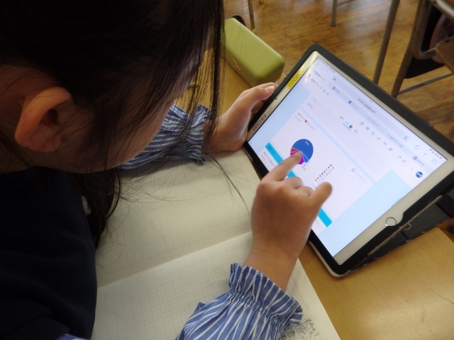 4年生の1時間目は国語の授業でした。「調べたことを報告しよう」の学習です。クラスのみんなに「好きな曜日」「好きなスポーツ」「ALについてどう思うか」など、自分でテーマを決めてアンケートをとりました。...