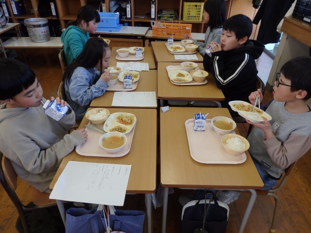 今日は3年生がFMゆきぐにの給食インタビューを受けます。インタビューが始まるまでの子どもたちの様子です。余ったおかずのジャンケンをしたり、お代わりをしたりしていました。写真のように野菜を大盛りにした...
