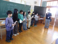 6年生の卒業式練習。合唱の前に一人一言ずつ卒業への思いや感謝の気持ちを語ります。全員が自分が言うことばをしっかり覚えて堂々としていました。(すいません、全員はカメラで追えませんでした)