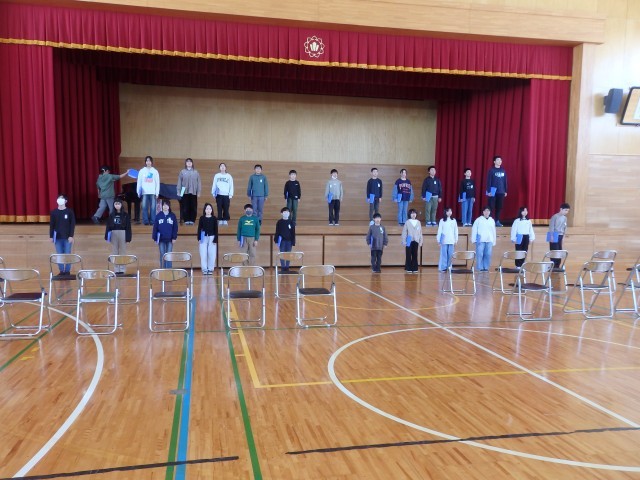 6年生は5時間目に卒業式の練習を行いました。座っているときや立っているときの姿勢、礼の仕方とタイミングを確認したり、卒業合唱の隊形作りをしたりしました。緊張感をもって、表情がキリッとしていますね。