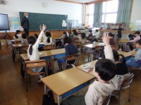 1年生の5時間目は国語の授業でした。「子どもを守る動物たち」の学習です。アリクイについて書かれている段落の内容について先生がクイズ形式で出す問題に答えていました。「アリクイの口の形は?」「アリクイを...