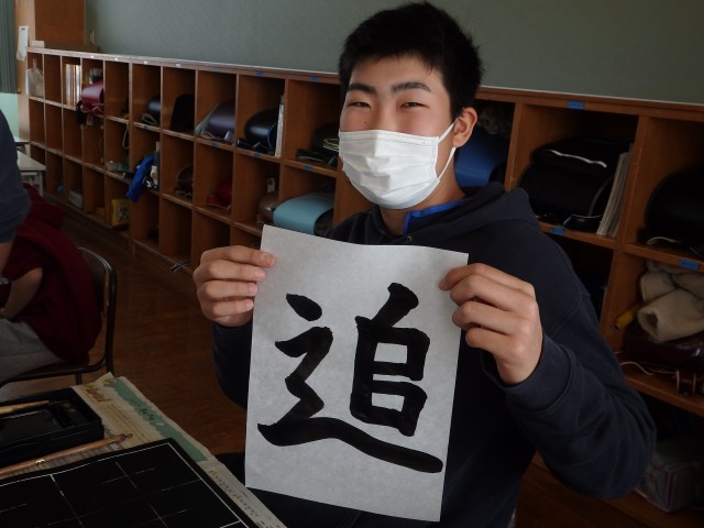 6年生の4時間目は書写の授業でした。今の自分を漢字一文字で表していました。1つの漢字を何度も何度も書いている子もいれば、1枚ずつ違う漢字を何枚も書いている子もいました。「夢」「追」「友」「絆」「叶」...