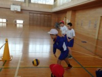 4年生の4時間目は体育の授業でした。「ワンバウンド・バレー」の学習でしょうか、最初に先生を含めた6人でデモンストレーションをしました。三角コーンにポールを渡したものをネット代わりで真ん中に置き、それ...